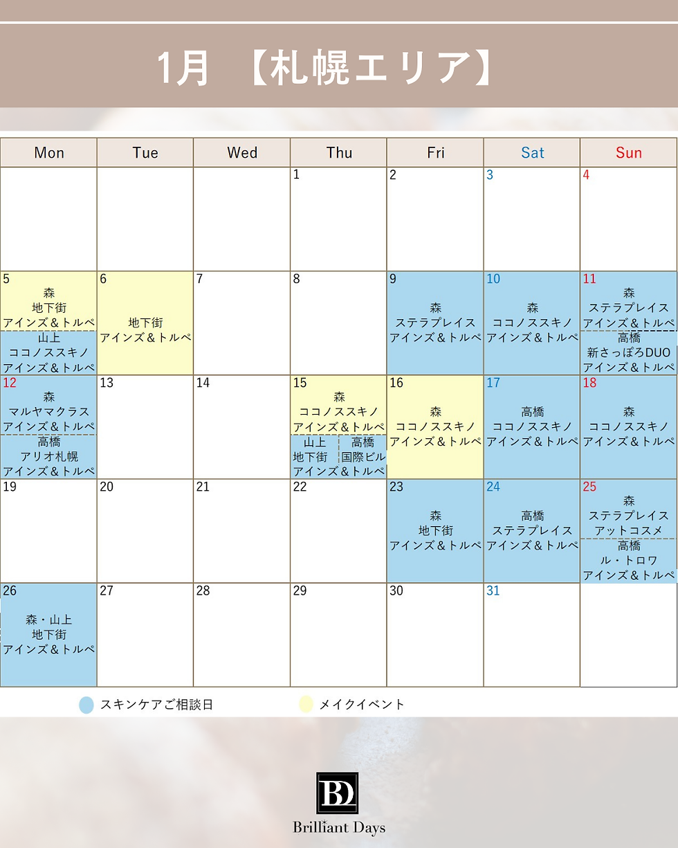1月『Beauty Purser』入店スケジュールのお知らせです♥